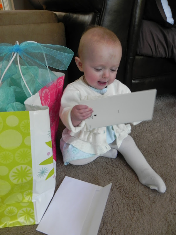At the beginning of March we went to Claire's friend Kayla's 1st birthday party. Claire had to check out the card.